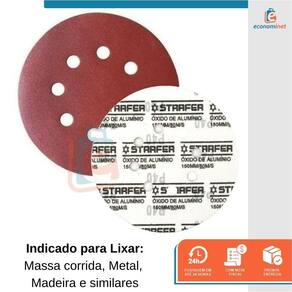 O disco de lixa é ideal para se usar com discos de borracha, furadeira e esmerilhadeira. Produzido em lixa abrasiva com pluma indicado para lixar ferro e madeira. Características técnicas: material: resina, óxido de alumínio, papel e pluma medidas: 150mm quantidade de furos: 8 limite máxima: 12. 220rpm - 80m/s grão: 60 marca: starfer ref. : 4003772