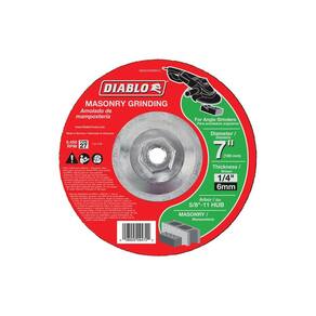 O disco de moagem de alvenaria tipo 27 da Diablo foi projetado para um desempenho superior em aplicações exigentes de concreto e alvenaria. Construído com uma mistura premium de carboneto de silicone, esse disco de alta eficiência remove o material mais rapidamente e dura mais do que os rebolos padrão. Sua espessura de 1/4" e o design central deprimido Tipo 27 permitem uma retificação angular precisa e um controle aprimorado em áreas de difícil acesso. Totalmente reforçado para maior resistência, ele resiste ao uso rigoroso para suavizar costuras, chanfrar bordas ou triturar superfícies de alvenaria. O mandril de 5/8"-11 garante um ajuste seguro com a maioria das rebarbadoras, oferecendo instalação sem complicações e alta produtividade. Ideal para concreto, tijolo, cimento, blocos de concreto e pedras de pavimentação, o disco de moagem de alvenaria da Diablo oferece a durabilidade e a potência de corte que os profissionais exigem, ao mesmo tempo em que melhora a eficiência do local de trabalho e reduz o tempo de inatividade com menos trocas de disco.