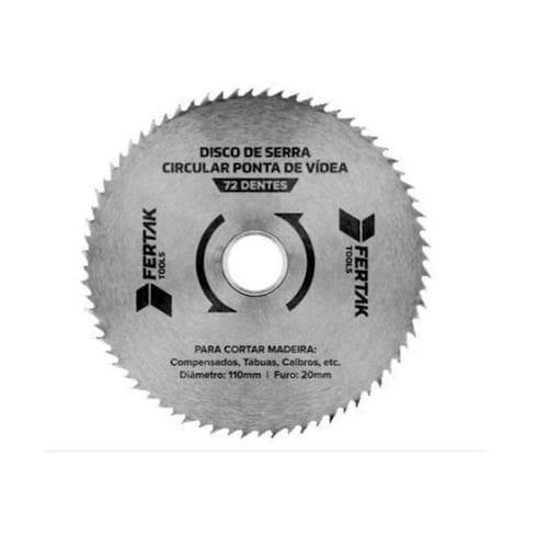 O Disco de Serra Circular Fertak Tools possui um diâmetro de 110 mm e é projetado para ser utilizado em serras circulares com um furo central de 20 mm. Ele apresenta 72 dentes, o que o torna uma escolha ideal para cortes precisos em diversos materiais. Com 72 dentes, esse disco é especialmente adequado para cortes finos e precisos, pois a maior quantidade de dentes distribuídos ao longo da lâmina permite que ele corte o material de forma mais suave e reduza o surgimento de lascas e rachaduras no acabamento.
