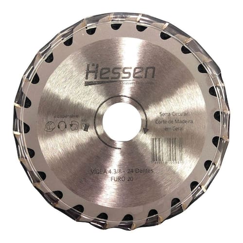 Disco De Serra Circular Para Madeira 4.3/8 110mm 24 Dentes Hs 39097 Disco de Serra Circular para Madeira 4.3/8 110mm 24 Dentes HS 39097 - Lâmina de Serra Circular 110mm (Diâmetro) x 24 Dentes x Furo 20mm Características Gerais do Produto: - Modelo: 39097 - Marca: HS - Material: - Material Corpo : Aço Carbono Temperado; - Material Dentes: Carbureto de Tungstênio (vídea); - Rotação: Rotação máxima: 12.000 RPM.; - Diâmetro: 4.3/8 - 110mm; - Características: - Furo central: 20mm; - Numero de Dentes: 24; - Ideal Para: Uso em serras circulares e serras mármore (desde que respeitada a rotação indicada no disco) - Garantia direto com o Fabricante: 3 Meses Contra Defeitos de Fabricação Garantia: - 03 meses de garantia direto com o fabricante