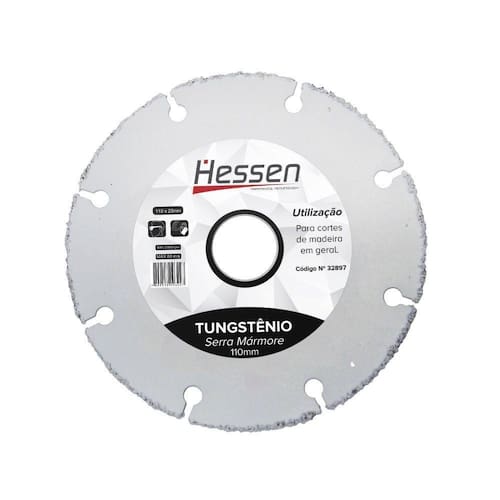 Disco De Serra Tungstênio Para Madeira Hessen 110mm X 20mm 32897 Disco de Serra Tungstênio para Madeira Hessen 110mm x 20mm 32897 - Disco de Serra Tungstênio para Madeira Hessen 110mm x 20mm 32897 Características Gerais do Produto: - Marca: Hessen - Diâmetro: 115mm - Características: - Foram desenvolvidos com alta tecnologia.; - Grãos abrasivos especiais.; - Excelente durabilidade e altíssima performance.; - Desbaste agressivo, de rápida e fácil aplicação e excelente acabamento.; - Pode ser utilizado em lixadeiras elétricas e pneumáticas refrigeradas ou a seco.; - Excelente custo-benefício.; - Alta produção em mármores e granitos em geral.; Garantia: - 03 meses de garantia direto com o fabricante