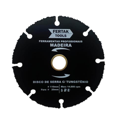 1 Disco de corte para madeira Indicado para serras mármore, é ideal para corte de madeiras e derivados: madeira dura, madeira macia, placas de compensado, aglomerados, MDF e pisos laminados. Espessura do disco: 1,2 mm. Possui borda segmentada com revestimento de carboneto de tungstênio, proporcionando um corte rápido, seguro, sem trancos e vibrações. Diâmetro do disco:110,0 Diâmetro do furo do disco:20,0 mm Rotação máxima (rpm):13800 /min Garantia - E (CDC):Garantia legal: 90 dias