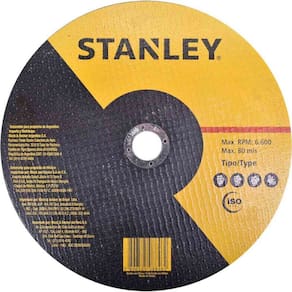 Marca: Stanley Modelo: STA0415 Diâmetro : 9" Espessura : 1/4" Eixo : 7/8" Tipo : 27 Aplicação : desbaste de metal