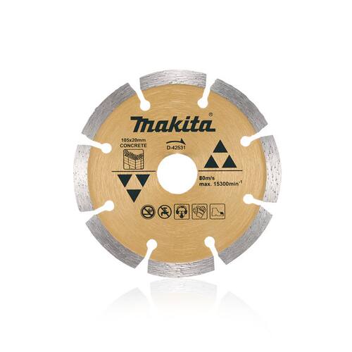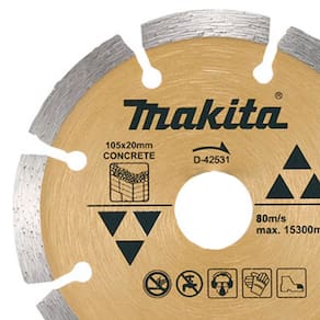 Disco diamantado 105 x 20 mm SE GM D-42531Maior camada diamantada aumentando a produtividade, corte mais rápido e fácilCorte seco ou água, trazendo maior versatilidadeUtilizado em granitos, mármores, produtos cerâmicos, tijolos de construção, pedras em geralFuro: 20 mmDiâmetro: 105 mmVelocidade: 15.300 RPMAcompanha anel de redução 16 mmMarca: MAKITARef.: MAKITA-D-42531Imagens meramente ilustrativasTodas as informações divulgadas são de responsabilidade do Fabricante/Fornecedor.