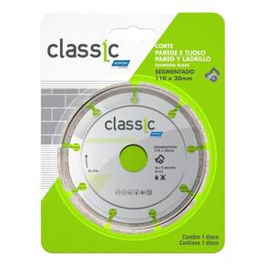 Descrição O Disco Diamantado 110 X 22,23mm Norton Classic Segmentado foi projetado para ser utilizado em operações simples do dia a dia, sendo ideal para o corte em concreto, tijolo, telha e alvenaria.