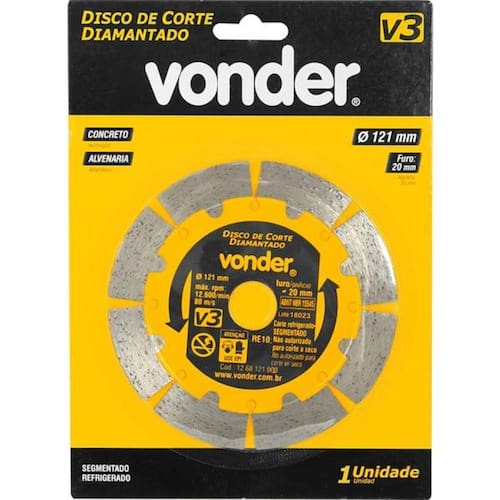 Disco diamantado 121 mm segmentado para concreto e alvenaria - V3