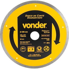 Especialmente indicado para cortar porcelanatos e cerâmicas duras. Utilizado em cortadores de cerâmicas e porcelanatos compatíveis com o diâmetro e furo do disco. Velocidade periférica máxima: 80 m/s.Características Técnicas: