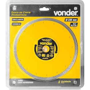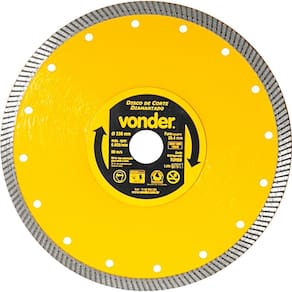 Especialmente indicado para cortar porcelanatos e cerâmicas duras. Utilizado em cortadores de cerâmicas e porcelanatos compatíveis com o diâmetro e furo do disco. Velocidade periférica máxima: 80 m/s.Características Técnicas: