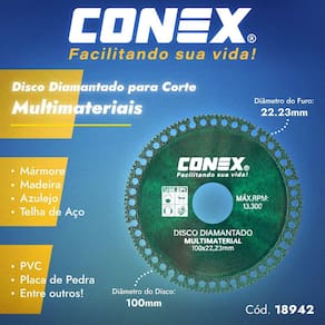 Acompanha o produto: • 1x Disco Diamantado Corte Multimateriais 100 X 22,23MM Conex 1x Anel Redutor de 20MM