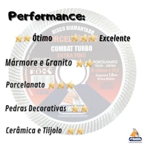 O disco de corte diamantado turbo apresenta o acabamento e precisão dos discos contínuos com o processo de refrigeração dos discos segmentados. Ideal para operações sem água ou refrigeradas com acabamentos sem fissuras ou rebarbas. O disco de corte é usado em máquina de serra mármore ou outra máquina apta a suportá-lo.