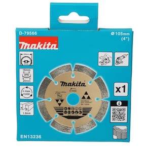 Disco Diamantado Segmentado 105Mm Para Concreto D-79566 Makita Produto: Disco diamantado segmentado 105 mm para concreto e alvenaria - D-79566 Marca: Makita Descrição: O Disco diamantado segmentado 105 mm para concreto e alvenaria D-79566 da Makita é a escolha perfeita para profissionais que buscam eficiência e precisão em cortes. Desenvolvido com alta tecnologia, este disco diamantado foi especialmente projetado para uso em serra mármore, garantindo cortes precisos e rápidos em concreto e alvenaria. Com um diâmetro de 105mm e furo central de 20mm, este disco oferece compatibilidade excelente com a maioria das serras mármore disponíveis no mercado. Sua espessura de apenas 2mm e a altura de segmento de 9mm permitem um corte limpo e reduzem a geração de poeira, tornando o seu ambiente de trabalho muito mais limpo e seguro. Características • Alta durabilidade: Feito com materiais de alta qualidade que garantem uma vida útil prolongada mesmo sob uso intenso. • Cortes precisos: A precisão dos segmentos diamantados permite cortes extremamente precisos, evitando desperdícios de material. • Uso a seco: Projetado para uso a seco, facilitando o manuseio e eliminando a necessidade de água durante o corte, ideal para ambientes onde a água é um fator limitante. • Compatibilidade universal: Com um furo de 20mm, este disco é compatível com a maioria das marcas de serra mármore do mercado. Se você é um profissional à procura de eficiência, o Disco Diamantado Segmentado 105 mm para Concreto e Alvenaria - D-79566 da Makita é a ferramenta que não pode faltar no seu arsenal.Especificações: Diâmetro: 105mmFuro: 20mmEspessura: 2mmAltura do segmento: 9mmUso: a seco Ean: 197050357120