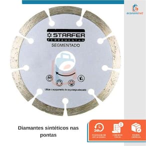 CARACTERÍSTICAS TÉCNICAS: Material: Aço Carbono com lâmina diamantada Medidas: 180mm altura x 25,4mm - 7 diâmetro x 7,5mm espessura Máxima rotação: 8.500rpm - 80m/s Marca: Starfer Ref.: 1264001 Marca: Não Informado
