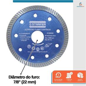 Garanta mais precisão, resistência e eficiência nos seus cortes com o Disco Diamantado Turbo Contínuo Starfer Marca: Não Informado