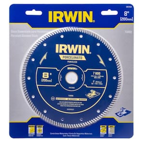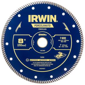 O Disco Diamantado Turbo Irwin IW57800 é indicado para cortes precisos em porcelanatos, proporcionando alto desempenho e durabilidade. Com espessura reduzida e perfil turbo, permite cortes consistentes e suaves, compatíveis com equipamentos de 200 mm. Pode ser utilizado a seco ou com água, oferecendo baixo nível de ruído durante o uso.