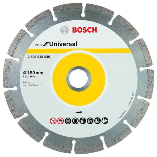 Disco diamantado universal 22 x 180mm bosch 2608615030 descrição: disco diamantado segmentado 180 x 22,23 x 2,2 x 7 mm / eco for universal. Características: o disco diamantado eco for universal possui segmentos de corte sinterizados oferecendo um bom desempenho de corte em diversos materiais como: concreto, tijolo, calcário e telha. Todos os nossos produtos são novos, e possuem do fabricante. Disco diamantado universal 22 x 180mm 2608615030 bosch Marca: Não Informado