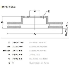 (A) Diâmetro externo de 332,00mm;