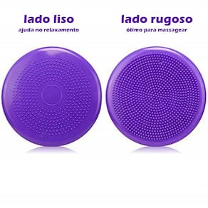 Fabricado em PVC resistente, o Disco de Equilíbrio Inflável tem 33 cm de diâmetro e acompanha uma bomba manual com bico dupla função: acoplado à bomba para inflar e desacoplado para desinflar o disco. Pode ser usado como massageador, em treinamentos funcionais e exercícios de fortalecimento (cheio), e pode ser usado também como almofada para sentar, proporcionando distribuição uniforme do peso do corpo e maior conforto para pessoas que passam muito tempo do dia sentadas.