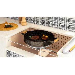 Disco Esmaltado com Borda e Alças de Madeira 43 cm - Especificações TécnicasDiâmetro: 43 cm.
