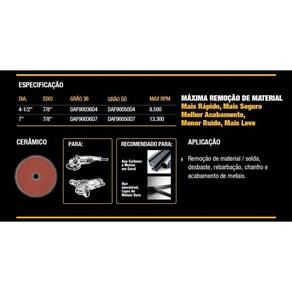 Disco de fibra ceramico 36g 7x7/8 c/25 unidades dewalt daf90036d7 Disco lixa 7 dewalt daf90036d7 36 fibra de cerâmica é fabricado com a nova geração de grão de cerâmica com revestimento superior especial e apoio de alta qualidade.