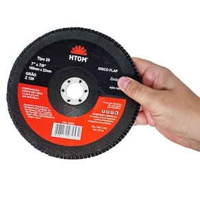 - Marca: HTOM - Referência: HTOM-40582 - Diâmetro externo: 7 Pol. 180mm - Diâmetro do furo: 7/8' - 22 mm - Tamanho do grão abrasivo: grão 120 - Material: Zircônia - Indicado para desbaste e acabamento em aço inox, alumínio, metais ferrosos e não ferrosos com esmerilhadeiras angulares - Permite atividades de desbaste e acabamento ao mesmo tempo, eliminando a troca de discos - Proporciona menor vibração e ruído comparado com o disco de desbaste convencional - Seu formato cônico permite um melhor aproveitamento do disco aumentando o rendimento - Tipo de costado: fibra - Tipo do perfil do disco de desbaste/acabamento flap-disc: cônico - Rotação máxima rpm : 13300 rpm - Velocidade periférica: 80 m/s - Norma de referência: Abnt Nbr 14960 - Peso bruto: 120 gramas