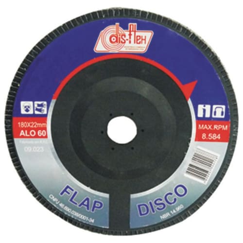 - Disco Flap em óxido alumínio. - O Disco flap é um disco de lixa com uma base de fibra angular , que serve para dar acabamento em peças em geral. Sua utilização vai desde remoção de tinta e ferrugens até soldas, eles são os que dão melhor acabamento em diversas superfícies com resultados excelentes. A granulatura das lixas diferem conforme o serviço que você for realizar. - Medida: 4.1/2" 115mm - Furo: 7/8" 22mm - Composição: cola epóxi, lixa com costado de pano, suporte em fibra de vidro. - Max. Rpm: 13.286