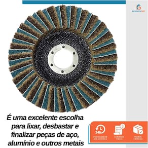Características: Desempenho Robusto: As 28 abas de manta abrasiva e lixas sobrepostas (flaps) permitem uma remoção rápida e agressiva de material, ideal para desbastes mais pesados e remoção de rebarbas em pontos de soldagem. Precisão em Desbaste: A manta de densidade grossa (amarela) com grão #40 proporciona uma ação abrasiva mais intensa, perfeita para superfícies que requerem um desbaste mais vigoroso. Resistência e Durabilidade: Construído para suportar altas rotações de até 12.200 RPM, este disco é ideal para uso contínuo e oferece uma longa vida útil, mesmo em aplicações exigentes. Versatilidade: Adequado para uma variedade de superfícies metálicas, como aço e alumínio, sendo eficaz no desbaste e na preparação de superfícies para tratamentos subsequentes.