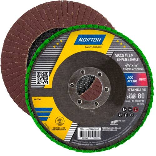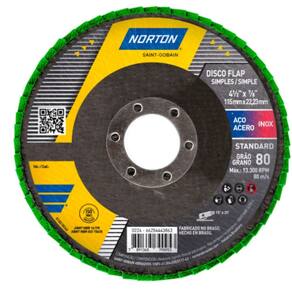 1 Unidade de Disco Flap Fibra Standard 115mm de Grão 80 - Norton Prazo de Garantia