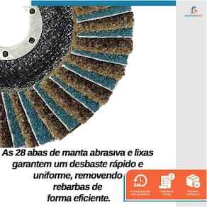 Características: Desempenho Robusto: As 28 abas de manta abrasiva e lixas sobrepostas flaps permitem uma remoção rápida e agressiva de material, ideal para desbastes mais pesados e remoção de rebarbas em pontos de soldagem. Precisão em Desbaste: A manta de densidade grossa amarela com grão 40 proporciona uma ação abrasiva mais intensa, perfeita para superfícies que requerem um desbaste mais vigoroso. Resistência e Durabilidade: Construído para suportar altas rotações de até 12.200 RPM, este disco é ideal para uso contínuo e oferece uma longa vida útil, mesmo em aplicações exigentes. Versatilidade: Adequado para uma variedade de superfícies metálicas, como aço e alumínio, sendo eficaz no desbaste e na preparação de superfícies para tratamentos subsequentes.