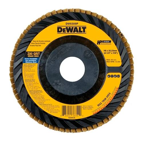 O Disco Flap Plástico Reto Z 120 4 1/2" x 7/8" DW8310P-AR é projetado para remover material e dar acabamento no mesmo processo, eliminando a necessidade de troca de discos durante trabalhos que requerem ambas as operações. Com grãos zirconados, oferece eficiência nos trabalhos de remoção e acabamento. O costado plástico usinável proporciona maior duração.