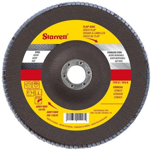 Aplicável em operações de desbaste, remoção de solda e acabamento em aço inox, alumínio, metais ferrosos e não ferrosos com esmerilhadeiras angulares. - Preferencialmente utilizado em superfícies curvas e cantos devido ao seu formato cônico, proporcionando ótimo acabamento. - Ângulo de trabalho de 15 a 25. CARACTÉRISTICAS: -Discos com suporte em fibra de vidro e formato cônico. -grãos de zircônio proporcionam maior vida útil. -ótimo custo-benefício com excelente taxa de remoção de material. -desbaste e acabamento na mesma operação, reduzindo o tempo e custo no processo. -menor ruído e vibração. -grão 407 Marca: Não Informado Ean: 7891265014092
