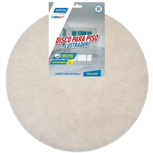 Produto: Disco lustrador de fibra para piso não abrasivo 350 mm Marca: Norton Cor: BrancoDescrição: O Disco lustrador de fibra para piso não abrasivo 350 mm da Norton é a solução ideal para alcançar um acabamento impecável em seus pisos. Desenvolvido para atender todas as etapas do tratamento de pisos, este disco é perfeito para polimento, oferecendo um alto nível de brilho e um acabamento . Experimente a excelência do Disco Lustrador de Fibra Norton Care e garanta um acabamento superior em seus projetos de tratamento de pisos. Ideal para quem busca qualidade, segurança e um brilho incomparável. Benefícios: • Acabamento impecável: Realça a beleza natural do seu piso;• Higiene: Protege sua família e colaboradores contra a proliferação de germes;• Facilidade de uso: Fácil de instalar e operar;• Economia: Maior durabilidade, reduzindo custos com reposição.Especificações: Não abrasivo: Garante um polimento seguro e eficaz, sem danificar o piso;Alto brilho: Proporciona um acabamento brilhante e duradouro;Tecnologia Norton Care: Evita a proliferação de vírus e bactérias, garantindo um ambiente mais higiênico;Versátil: Ideal para diversos tipos de pisos, como mármores, granitos e cerâmicas vitrificadas;Durabilidade: Construído com materiais de alta qualidade, garantindo longa vida útil. Marca: Não Informado Ean: 7891345672792
