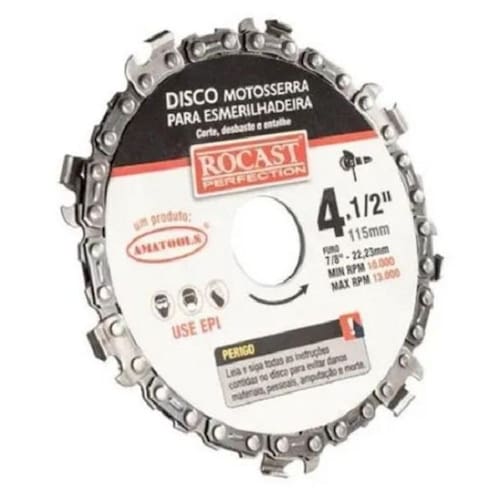 Disco motosserra para esmerilhadeira 4. 1/2 - - rocast - com garantia - - com - embalado com cuidado e proteção