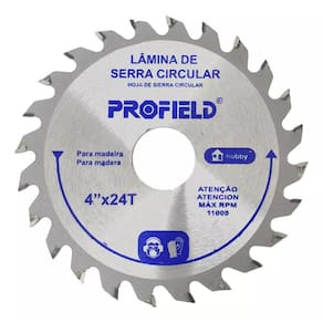 Especificações Técnicas: - Título: Disco De Serra Circular Madeira 24 Dentes 110mm 7/8 22mm Aço - Marca: Profield - Material: Aço - Diâmetro de Corte: 110mm - Diâmetro Central: 22mm - Quantidade de Dentes: 24 dentes - Espessura: 2mm - Cor: Aço - Unidades por Embalagem: 1