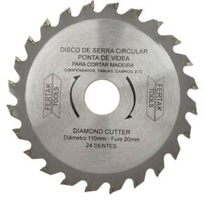 Tipo: Disco de serra circular para madeira Diâmetro: 110mm Furo: 20mm Dentes: 24 Material: Aço de alta qualidade Cor: Prata Compatibilidade: Compatível com serras circulares que tenham um eixo de 20mm Aplicações Diversificadas: Adequado para cortar uma ampla gama de madeiras macias, compensados e MDF, este disco é ideal para projetos de marcenaria residenciais, comerciais e industriais.