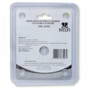 - Marca: Melfi; - Referência: 10704; - Lâmina em aço carbono temperada; - Dentes com ponta de metal duro fixados por brasagem; - Dentes afiados para cortes suaves; - 24 Dentes em widea; - Ângulo de ataque dos dentes agressivo para cortes rápidos; - Acompanha anel de redução (20-16mm).