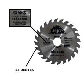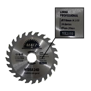 Informações técnicas: Perfil do corte: Serra Tipo de corte: A seco e refrigerado Dimensões: - Diâmetro externo: 110mm 4.3/8'' - Diâmetro do furo: 20mm - Espessura: 2mm Quantidade de dentes: 24 Rotação máxima por minuto RPM : 13.000 - 80m/s Para corte de: Madeira em geral Proporciona qualidade e produtividade na operação Produto de altíssima qualidade com alta performance