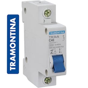 Disjuntor Din Monopolar 40 A - TramontinaUm item com a qualidade Tramontina, que você já conhece e confiaInformaçõesLeve alta qualidade para seus projetos elétricos, com o Disjuntor TR3KA C40 / Curva C Tramontina. Desenvolvido para garantir a segurança da instalação, ele preserva a rede elétrica e seus equipamentos em caso de sobrecarga ou curto-circuito. Ele é instalado no quadro de distribuição e dimensionado de acordo com a potência dos equipamentos, números de tomadas e quantidade de lâmpadas. Sua montagem é individual, sem a necessidade de desmontar o barramento, o que otimiza o tempo de instalação.Recomendações de usoA instalação e segurança: é importante que o produto seja instalado por profissional habilitado. Antes de instalar, desligue a energia elétrica.Dados técnicos:: Peso: 0,09 kg:: Comprimento: 80 mm:: Largura: 18 mm:: Altura: 74 mm