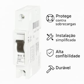 Disjuntor Unipolar 1P Curva B 32A Siemens Descrição do Produto O Disjuntor Unipolar 1P Curva B 32A Siemens é a escolha perfeita para quem busca segurança e eficiência em instalações elétricas. Projetado para proteger circuitos elétricos contra sobrecargas e curtos-circuitos, este disjuntor garante a integridade do seu sistema elétrico, proporcionando tranquilidade e confiabilidade. Benefícios e Características Principais: Proteção eficaz contra sobrecargas e curtos-circuitos. Curva B, ideal para aplicações residenciais e comerciais leves. Design compacto que facilita a instalação em quadros de distribuição. Fabricado pela Siemens, uma das marcas líderes em soluções elétricas. Especificações Técnicas: Corrente Nominal: 32A Tensão Máxima: 240/415V Curva de Disparo: B Capacidade de Interrupção: 6kA Dimensões: 18mm x 80mm x 70mm Material: Termoplástico de alta resistência Itens Inclusos: 1 Disjuntor Unipolar 1P Curva B 32A Siemens Manual de Instalação : 3 meses Marca: Não Informado