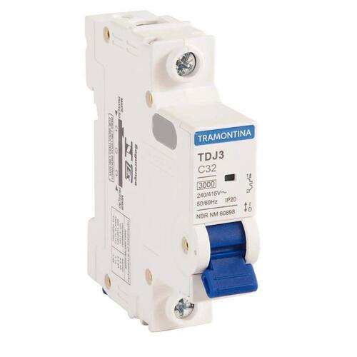 Leve alta qualidade para seus projetos elétricos, com o minidisjuntor TDJ3 1 P 32 A 3kA curva C Tramontina.