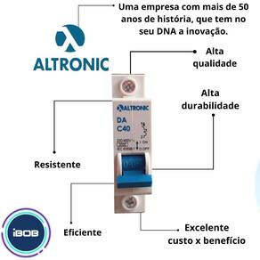 A ibob vendas online tem a missão de garantir a satisfação total do seu cliente, tanto nos produtos quanto no atendimento, estabelecendo assim uma relação de confiança disjuntor monopolar termomagnético 40a curva c nema altronic. Quer um disjuntor de alta qualidade para proteger seus fios e cabos contra curto-circuitos Então você precisa do nosso disjuntor monopolar termomagnético 40a curva c nema altronic. a linha de disjuntores altronic são equipamentos de alta tecnologia que protegem fios e cabos elétricos contra curto-circuitos e sobrecargas de energia, proporcionando aplicações seguras e econômicas em instalações elétricas, residenciais, comerciais e industriais. Características gerais: - marca: altronic; - peso: 1.050kg; - altura: 6.500cm; - largura: 2.000cm; - profundidade: 8.000cm; - corrente nominal: 40a; - tensão nominal: 230/400v; - frequência: 50/60hz; - temperatura ambiente: - 20c, + 50c; - curva de disparo: c; - tensão de isolação ui: 500v; - grau de proteção: ip 20; - fixação: encaixe perfil din 35mm. : Tenha tranquilidade de comprar com quem está disposto a te oferecer o melhor atendimento. Caso precise de ajuda após a compra, conte com o nosso time de especialistas para lhe auxiliar. Estamos sempre à disposição para tirar qualquer dúvida. Marca: Não Informado Ean: 7894795011777