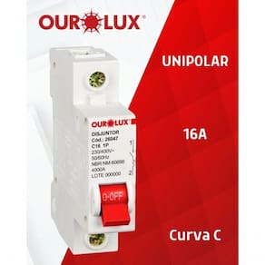 Disjuntor Ourolux Mono 16a A OUROLUX tem em seu mix de produtos disjuntores e IDRs (Interruptor Diferencial Residual) para garantir a proteção da instalação elétrica doméstica, comercial e industrial. Além disso, nossas soluções são de fácil instalação e asseguram contra choques e descargas elétricas que possam danificar patrimônios, causar incêndios ou até provocar ferimentos e queimaduras de alto risco. Ean: 7898324004889