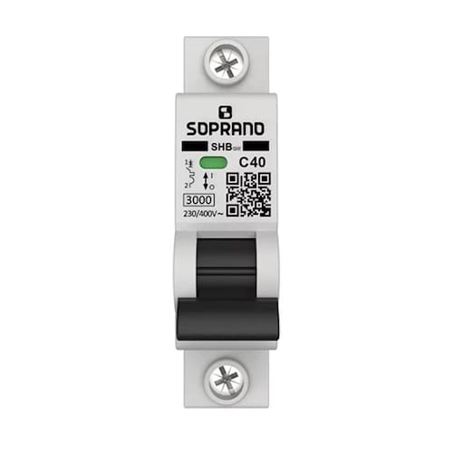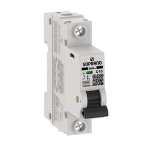 Características Principais: Marca: Soprano Modelo: 3kA Composição: Termoplástico e elementos metálicos Número de polos: 1 Corrente Nominal (In): 40A Classe de Proteção: classe 1 Tensão de Operação Nominal (Ue): 230/400Vca Curva de disparo termomagnética: tipo C - (5 a 10) x In EAN: 7891154190166