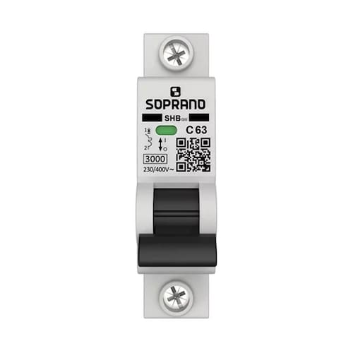Características Principais: Marca: Soprano Modelo: 3kA Composição: Termoplástico e elementos metálicos Número de polos: 1 Corrente Nominal (In): 63A Classe de Proteção: classe 1 Tensão de Operação Nominal (Ue): 230/400Vca Curva de disparo termomagnética: tipo C - (5 a 10) x In EAN: 7891154190128