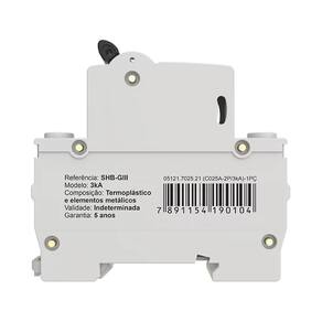 Características Adicionais: Proteção contra sobrecarga e curto-circuito com capacidade de interrupção de 3kA Conformidade com a norma NBR NM 60898 Certificação INMETRO para correntes de até 63A Indicado para instalações elétricas de baixa tensão em ambientes residenciais, comerciais e industriais Adequado para cargas indutivas e mistas Aplicação em corrente alternada (AC)