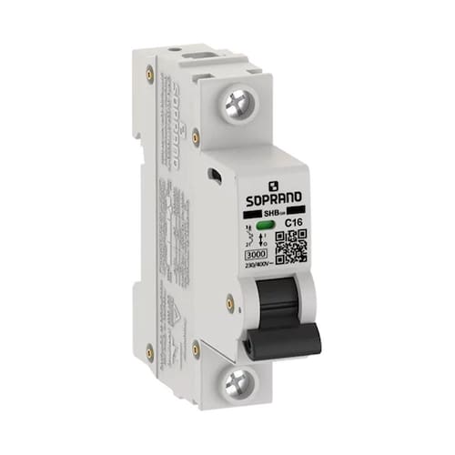 Características Principais: Marca: Soprano Modelo: 3kA Composição: Termoplástico e elementos metálicos Número de polos: 1 Corrente Nominal (In): 16A Classe de Proteção: classe 1 Tensão de Operação Nominal (Ue): 230/400Vca Curva de disparo termomagnética: tipo C - (5 a 10) x In EAN: 7891154190043