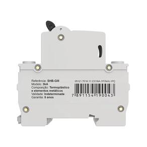 Características Adicionais: Proteção contra sobrecarga e curto-circuito com capacidade de interrupção de 3kA Conformidade com a norma NBR NM 60898 Certificação INMETRO para correntes de até 63A Indicado para instalações elétricas de baixa tensão em ambientes residenciais, comerciais e industriais Adequado para cargas indutivas e mistas Aplicação em corrente alternada (AC)