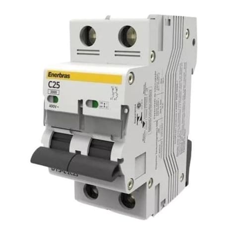 Disjuntor Termomagnético Bipolar Enerbras - 50 A Disjuntor termomagnético mais segurança para o seu maior patrimônio. Os disjuntores termomagnéticos da enerbras foram desenvolvidos para a proteção de instalações elétricas contra sobrecarga e curto-circuito. São equipados com sistemas de desarme através de disparadores térmicos para a proteção contra sobrecarga e magnéticos para a proteção contra curto-circuito, atuando com extrema agilidade e precisão. Possuem mecanismo de “disparo livre” garantindo o desarme do mecanismo mesmo que a alavanca de acionamento esteja travada na posição "ligado". Contatos especiais com camada de prata garantem a segurança contra soldagem em caso de curto-circuito. Possuem câmara de extinção de arco para absorver Energia do arco elétrico formado durante o curto-circuito, extinguindo-o imediatamente. Marca: Não Informado