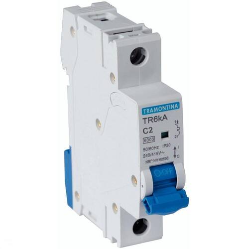 O Disjuntor TR6KA 1 P 2 A Curva C Tramontina é um item indispensável para garantir projetos elétricos funcionais e de alta qualidade. Desenvolvido para garantir a segurança da instalação, ele preserva a rede elétrica e seus equipamentos em caso de sobrecarga ou curto-circuito. Ele é instalado no quadro de distribuição e dimensionado de acordo com a potência dos equipamentos, números de tomadas e quantidade de lâmpadas. Sua montagem é individual, sem a necessidade de desmontar o barramento, o que otimiza o tempo de instalação. Além disso, possui indicador de liga e desliga que informa o seu status de funcionamento caso a manopla esteja travada. Um item com a qualidade Tramontina, que você já conhece e confia! Orientações . Características Gerais EAN13 7891435094367 DUN14 17891435094364 NCM 8536.20.00 Peso Líquido 0,1000 kg. Peso Bruto 0,1140 kg. Metragem 0,000120 m³. Dimensões Embalagem (Compr. X Larg. X Alt.) 80x 20x 75 mm. Dimensões Produto (Compr. X Larg. X Alt.) 86x 18x 78 mm. Observações A instalação e segurança: É importante que o produto seja instalado por profissional habilitado. Antes de instalar, desligue a energia elétrica.