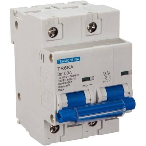 O Disjuntor TR6KA 2 P 100 A Curva C Tramontina é a escolha ideal para quem preza por alta qualidade e funcionalidade em seus projetos elétricos. Desenvolvido para garantir a segurança da instalação, ele preserva a rede elétrica e seus equipamentos em caso de sobrecarga ou curto-circuito. Ele é instalado no quadro de distribuição e dimensionado de acordo com a potência dos equipamentos, números de tomadas e quantidade de lâmpadas. Sua montagem é individual, sem a necessidade de desmontar o barramento, o que otimiza o tempo de instalação. Além disso, possui indicador de liga e desliga que informa o seu status de funcionamento caso a manopla esteja travada. Um item com a qualidade Tramontina, que você já conhece e confia! Orientações . Características Gerais EAN13 7891435094725 DUN14 17891435094722 NCM 8536.20.00 Peso Líquido 0,3000 kg. Peso Bruto 0,3330 kg. Metragem 0,000344 m³. Dimensões Embalagem (Compr. X Larg. X Alt.) 85x 54x 75 mm. Dimensões Produto (Compr. X Larg. X Alt.) 85x 54x 79 mm. Observações A instalação e segurança: É importante que o produto seja instalado por profissional habilitado. Antes de instalar, desligue a energia elétrica.