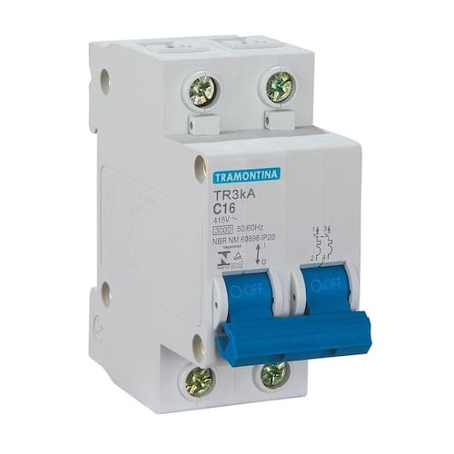Descrição: Disjuntor Din TR-3KA 2P 16A Curva C - Tramontina